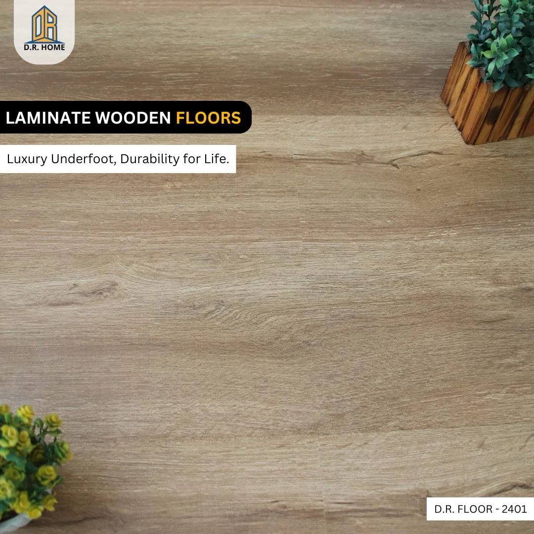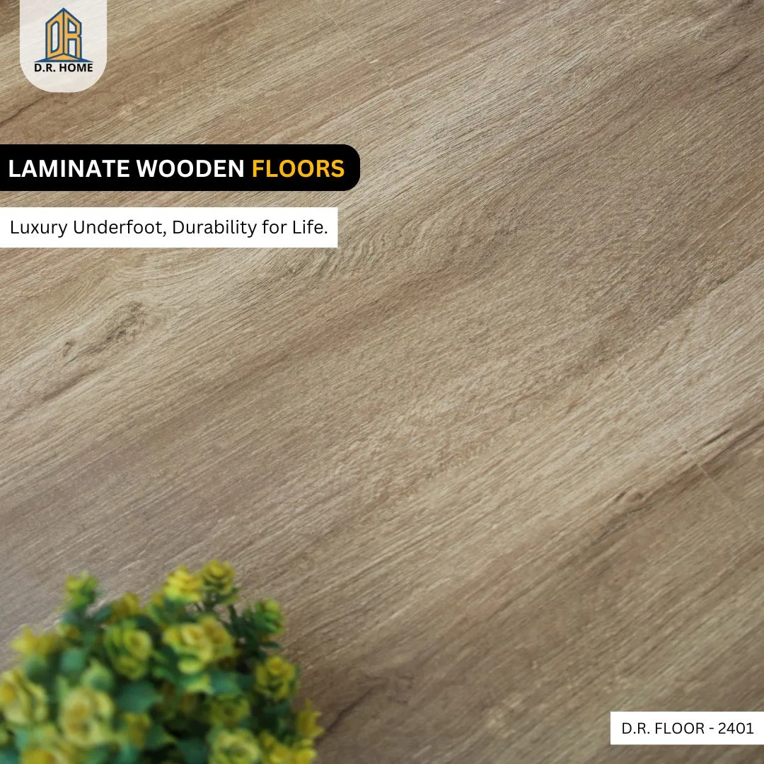 D.R. FLOOR – 2401 by D.R. HOME is a premium laminate wooden flooring solution designed to enhance any interior with its natural matte wood texture and timeless appeal. With a sturdy 8mm thickness, this flooring offers excellent comfort and stability underfoot. Built for modern living, it features a scratch-resistant surface and a moisture-resistant core, making it ideal for both residential and light commercial spaces. Its click-lock interlocking system ensures easy and secure installation, while the realistic wood grain finish adds a touch of elegance to every room.