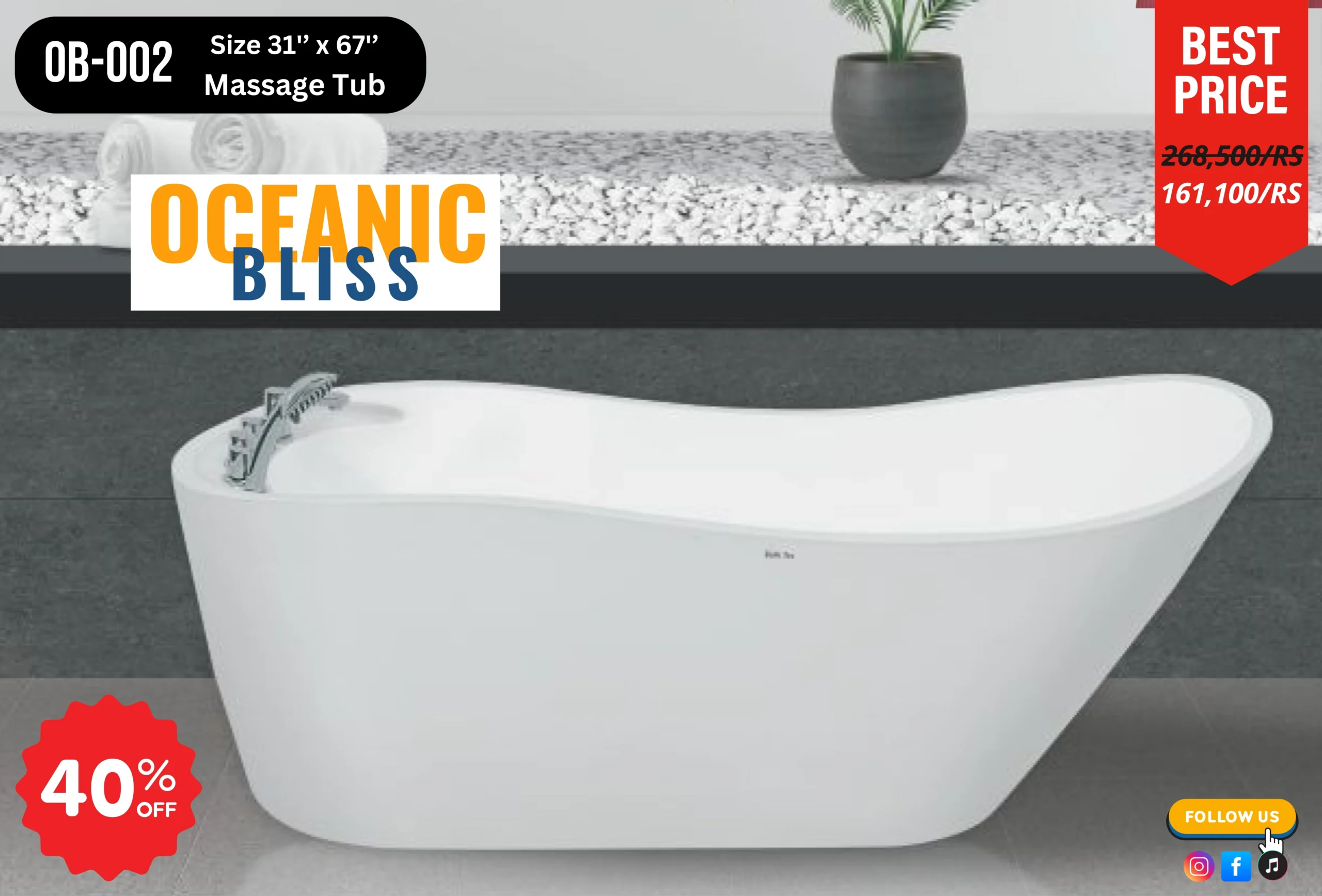 The Oceanic Bliss OB-002 Massage Tub is the perfect blend of luxury, comfort, and modern design, crafted to bring a spa-like experience to your home. With a spacious 31” x 67” size (without faucet), this sleek white bathtub is designed for deep relaxation, offering both style and functionality. Made from high-quality materials, it ensures durability and long-lasting performance while maintaining an elegant, minimalistic aesthetic that enhances any modern bathroom. The OB-002 provides a soothing massage function, allowing you to unwind after a long day in a truly refreshing way. Easy to maintain and resistant to stains, this bathtub is perfect for those who seek both beauty and practicality in their bathroom space. Each tub is expertly crafted either as a ready-made piece or customized upon order to meet your unique requirements.